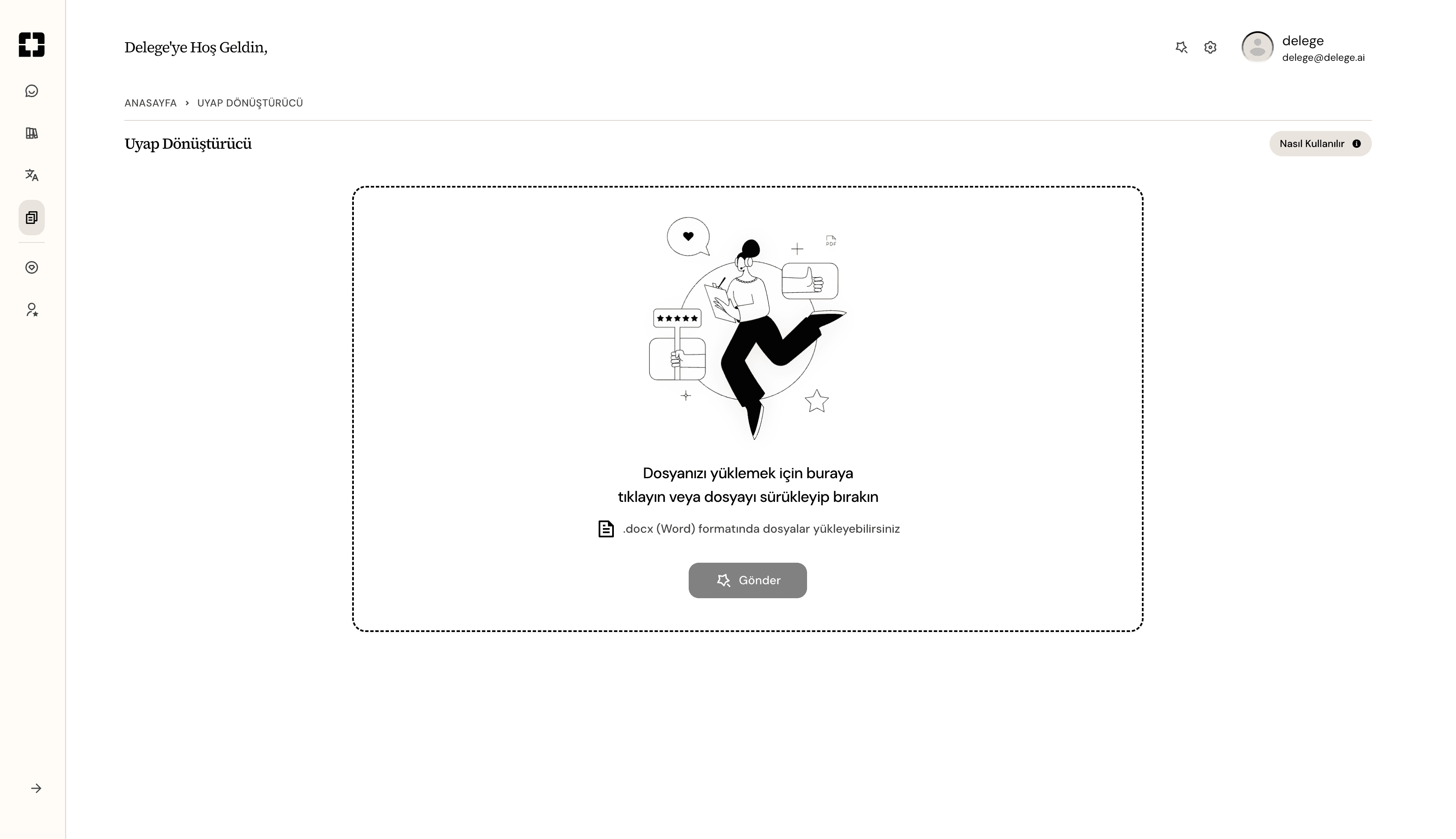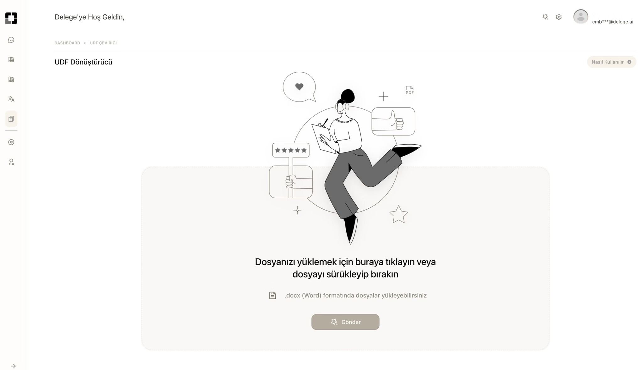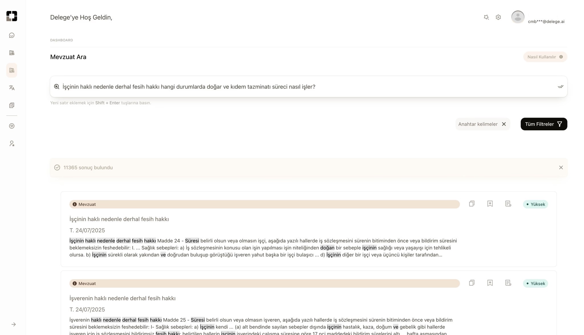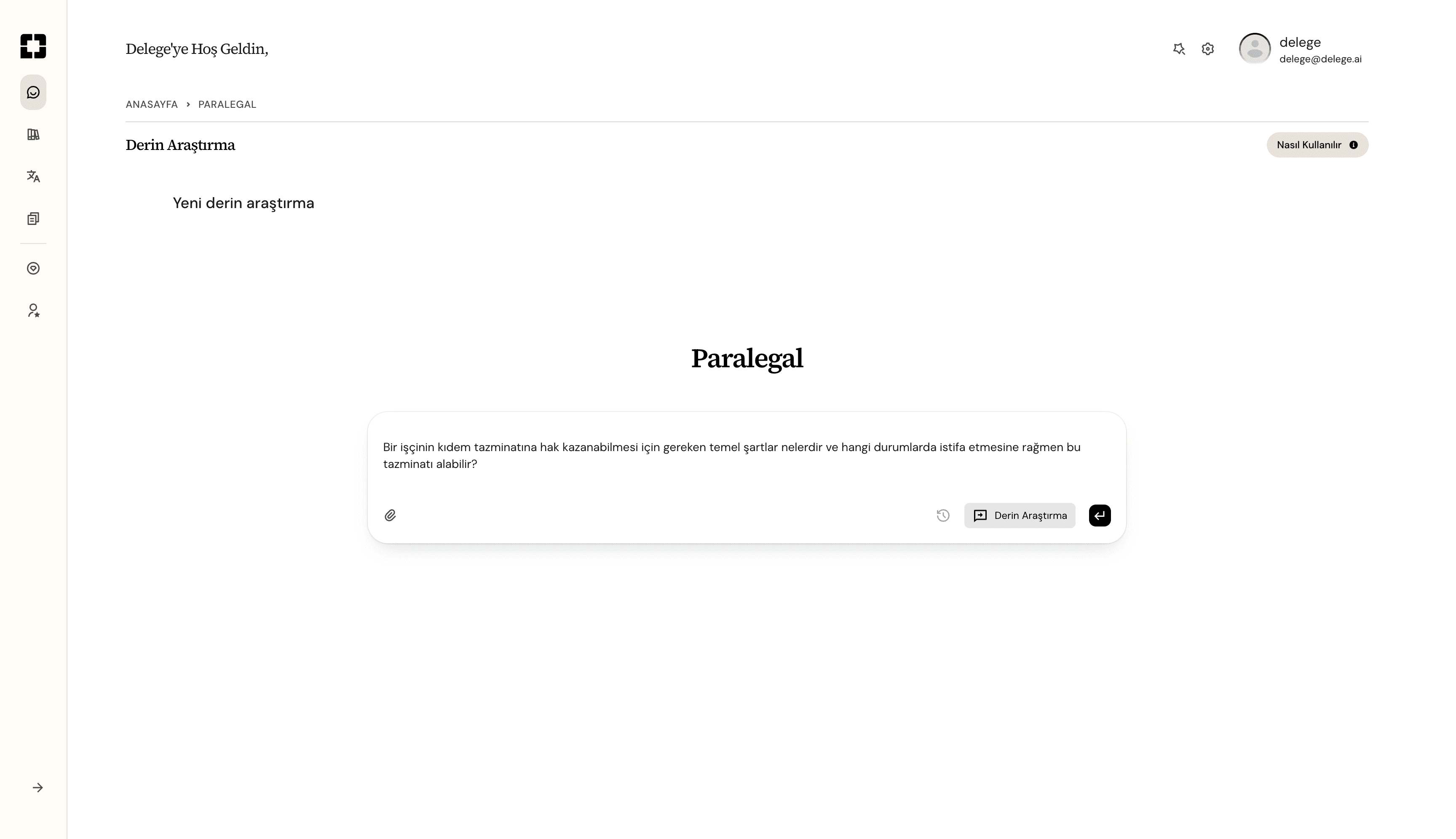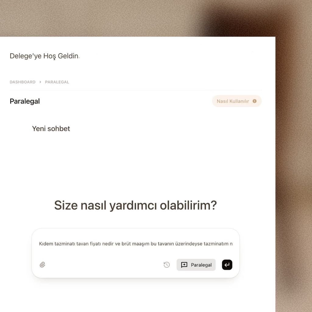 Delege, hukukçuların ve profesyonellerin ihtiyaç duyduğu tüm yapay zeka çözümlerini tek bir platformda birleştirir. Üç temel işlev ile hukukun her adımını kolaylaştırıyoruz.